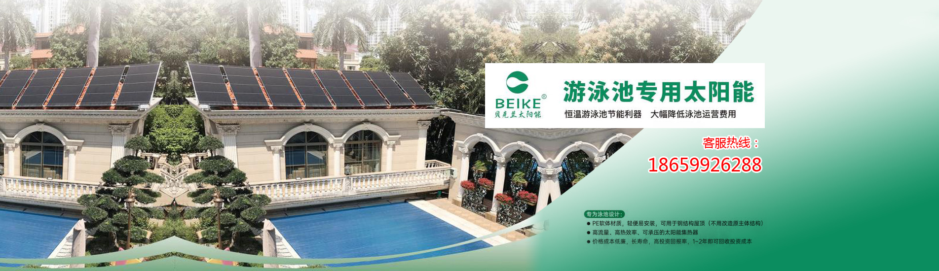 云南高級別墅區(qū)私家游泳池太陽能恒溫加熱系
